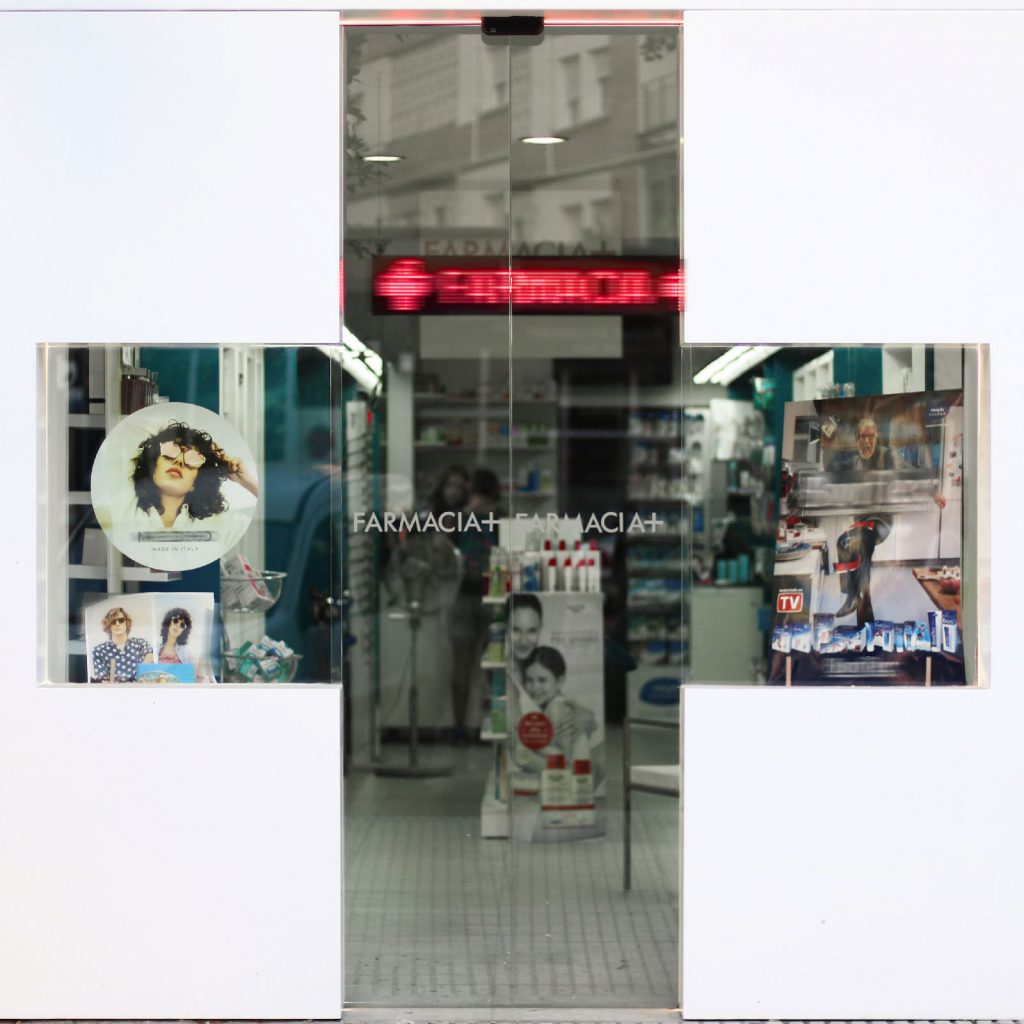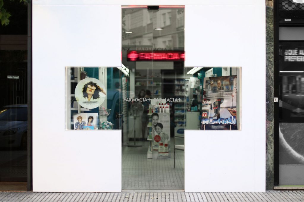 El proyecto actualiza la farmacia preexistente dotándola de una imagen icónica y comercial mediante un plano blanco continuo atravesado por una gran cruz recortada. Este signo, universal en el ámbito farmacéutico, se eleva a recurso arquitectónico: la geometría ortogonal de la cruz ordena acceso y escaparates, y la rotulación con banderola refuerza su legibilidad a distancia. Frente a un entorno saturado de estímulos, se adopta un lenguaje austero y nítido que prioriza reconocimiento inmediato y claridad funcional. Trabajamos el “plano” como límite entre interior y ciudad para proponer una experiencia precisa —“atravesar una cruz”— que, además de ser amable y operativa, fija un recuerdo perdurable en el usuario.